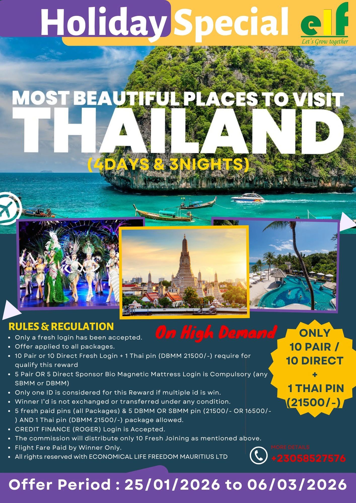2. 10 Fresh Paid Logins (Only Direct Sponsor) and 1 Thai Pin (only Direct Sponsor DBMM 21,500/- package) consider a winner ID.