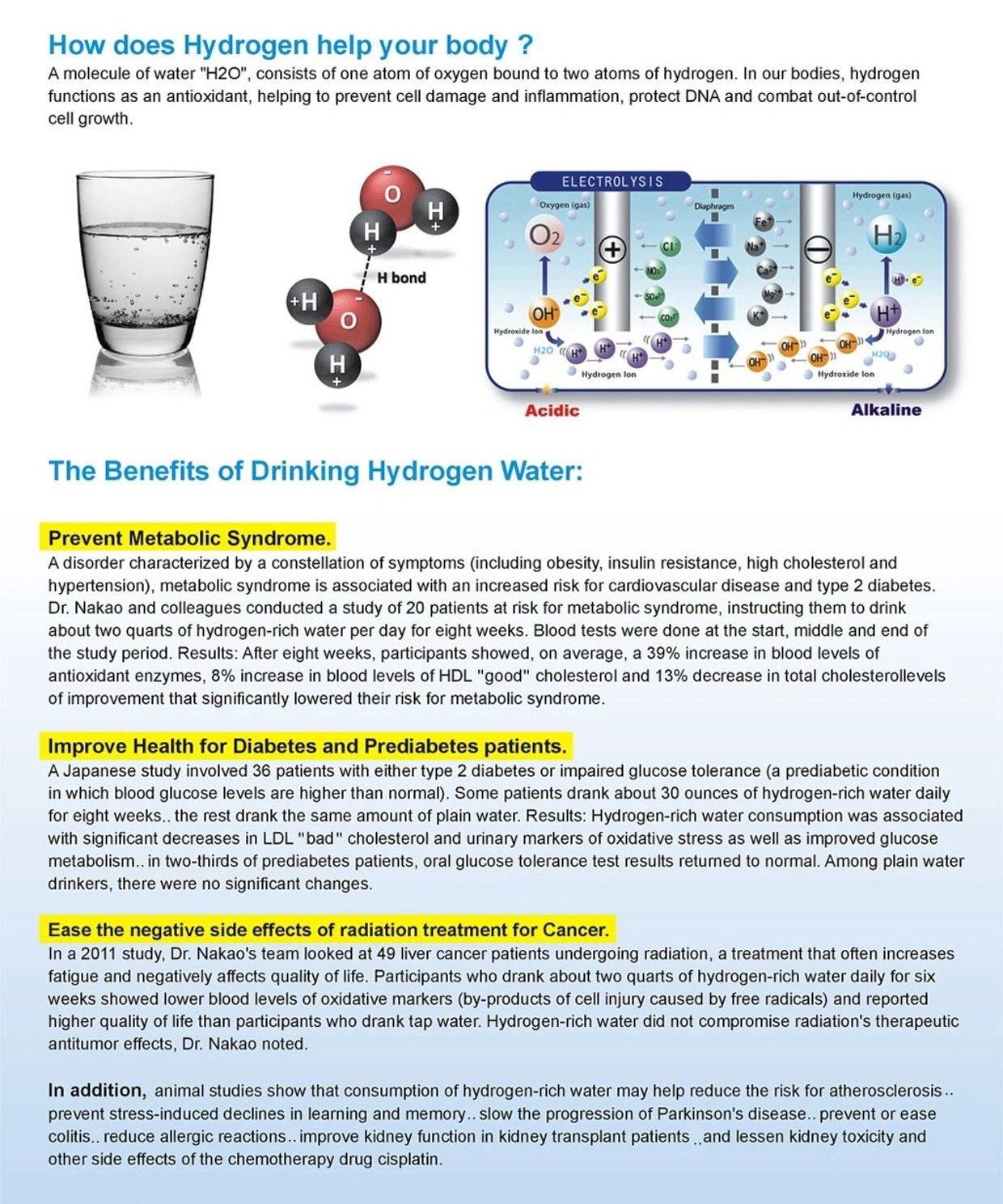 Drinking antioxidant water is probably the single most important thing you can do for your health and well-being. More plates in a water ionizer means higher negative ORP level and more hydrogen gas bubbles. which is believed to offer several health benefits, such as improved bone health, slowing down the aging process, improved gastrointestinal health, and decreased risk of cancer, heart disease etc.