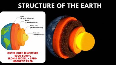 The Earth is divided into three main layers. The dense, hot inner core (yellow), the molten outer core (orange), the mantle (red), and the thin crust (brown), which support all life in the known universe. The inner and outer core are iron and iron/nickel. These spin and generate the earth’s magnetic field. Our Earth has an invisible force magnetic field which surrounds the Earth So basically this field protects the earth