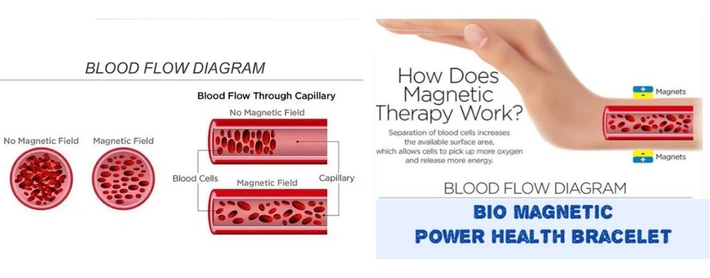 Magnets are made of metal and they attract metal particles. Blood contains iron and when magnets attach to our body, the iron in the blood is attracted to the magnetic field, this causes movement within the blood stream and the increased activity improves blood flow.